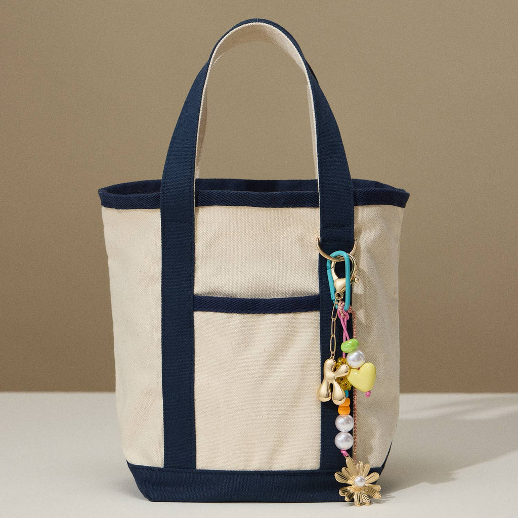 The Medium Cotton Tote is a cute and lightweight yet spacious enough to carry your daily essentials. Crafted from eco-friendly, durable cotton canvas, this bag is lightweight yet sturdy, making it a perfect choice for those who need a stylish, minimal carry-all. Whether you're running errands, heading out for a casual outing, or looking for a stylish everyday bag, the Medium Tote is the perfect combination of functionality and fashion! Finished with an outer pocket and accessory ring you can easily style your tote with a bandana or charm!