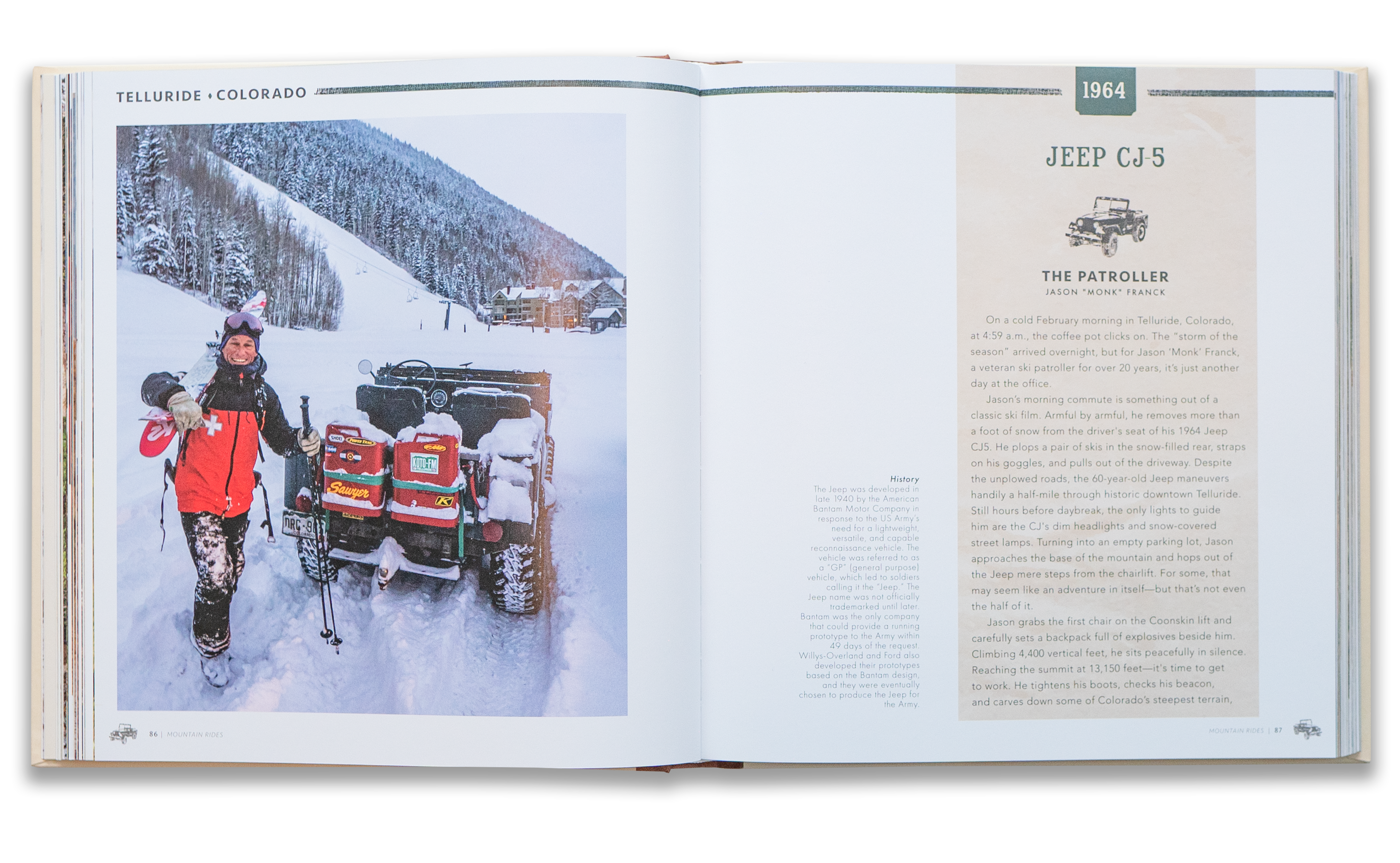 Hop in shotgun and travel back to the analog era through the pages of Mountain Rides, a unique photographic story telling of 20 vintage 4x4s and the people trying to keep them alive. Starting with vehicles from the 1940s, the stories are organized by decade of car and showcase all the classics: Scouts, FJs, Wagoneers, Broncos, Fords, and CJs, to name a few. These iconic cars reveal intimate family memories and offer a rare glimpse into the carefully guarded, tight-knit mountain towns of the west Aspen, Crested Butte, Jackson Hole, and many more.