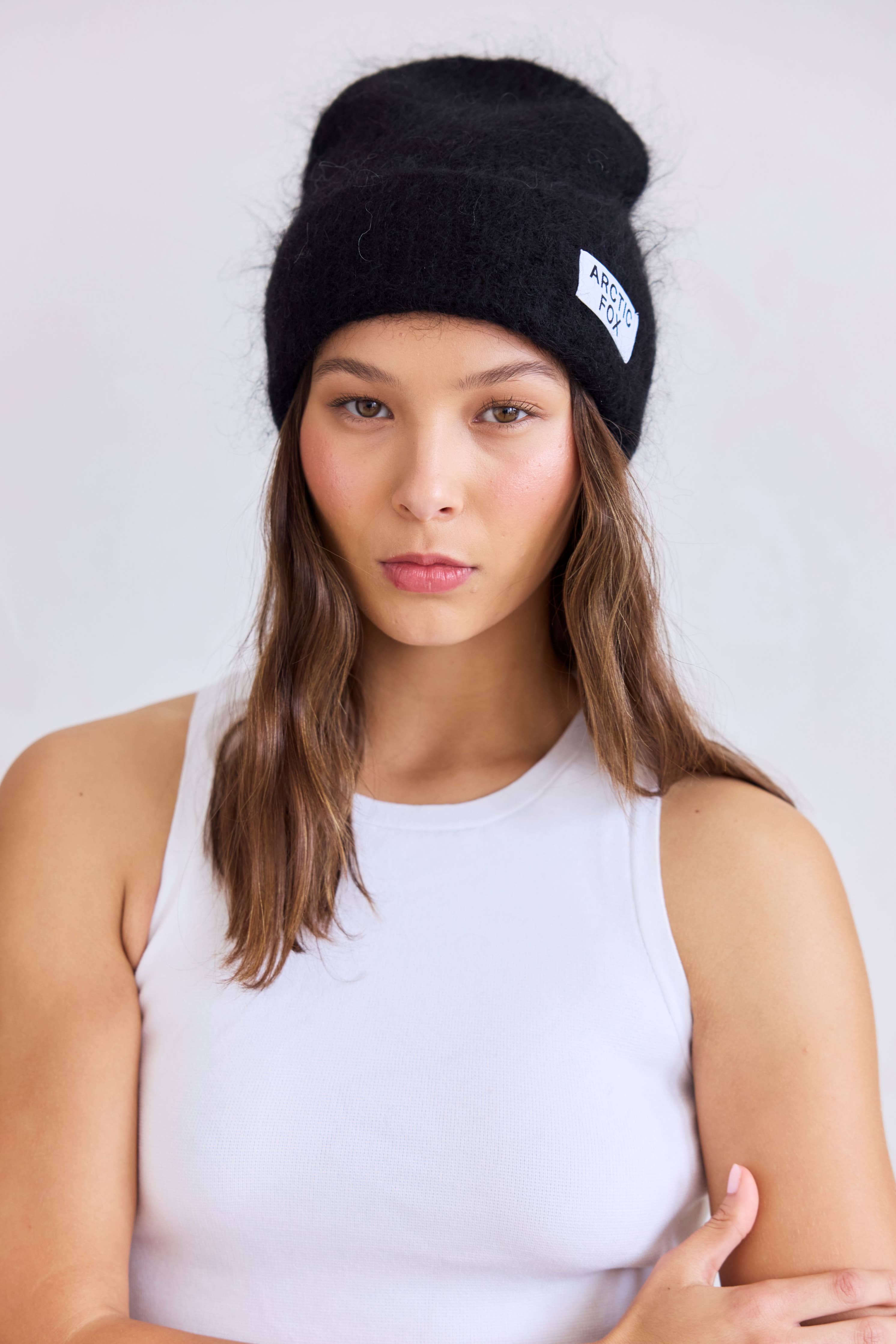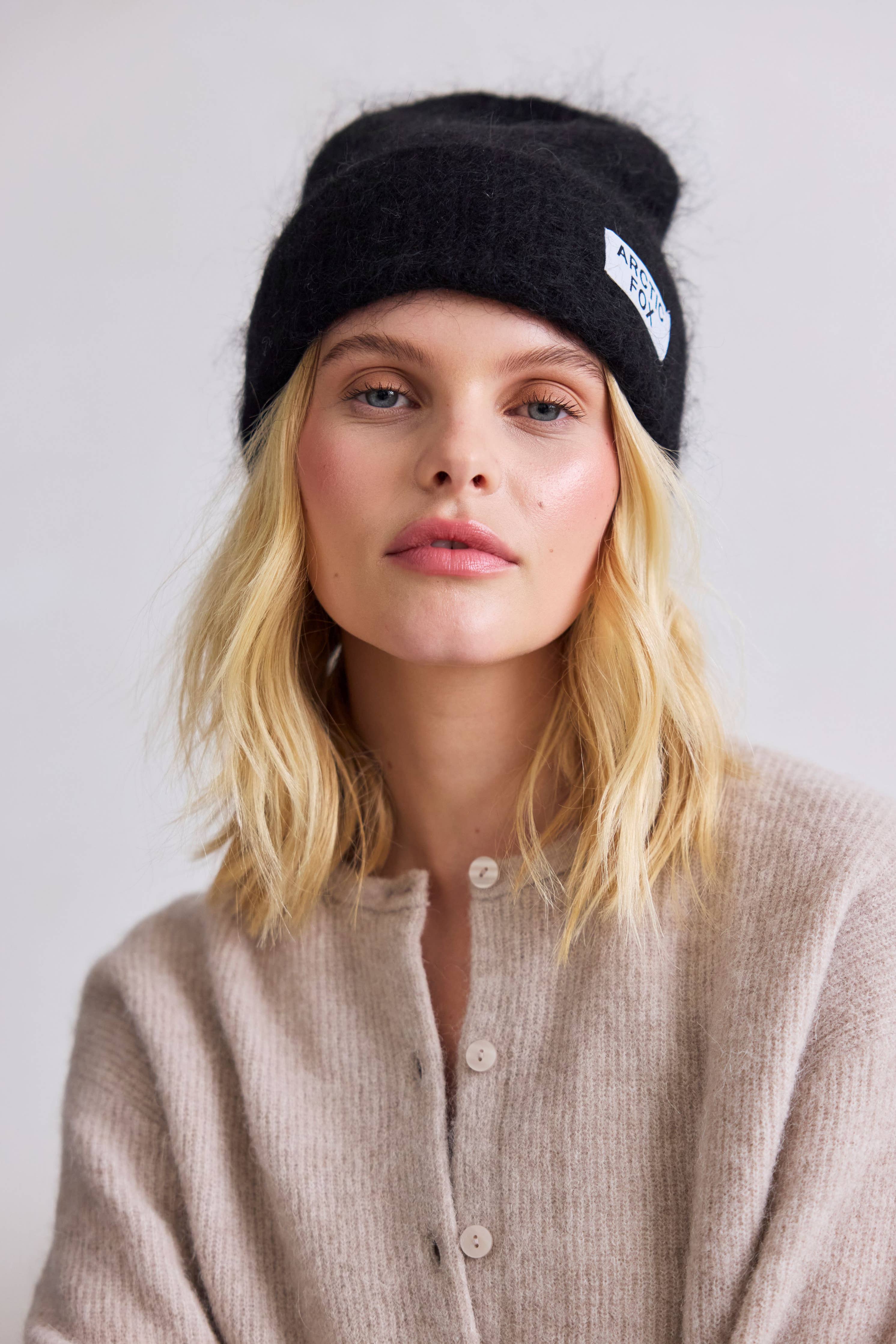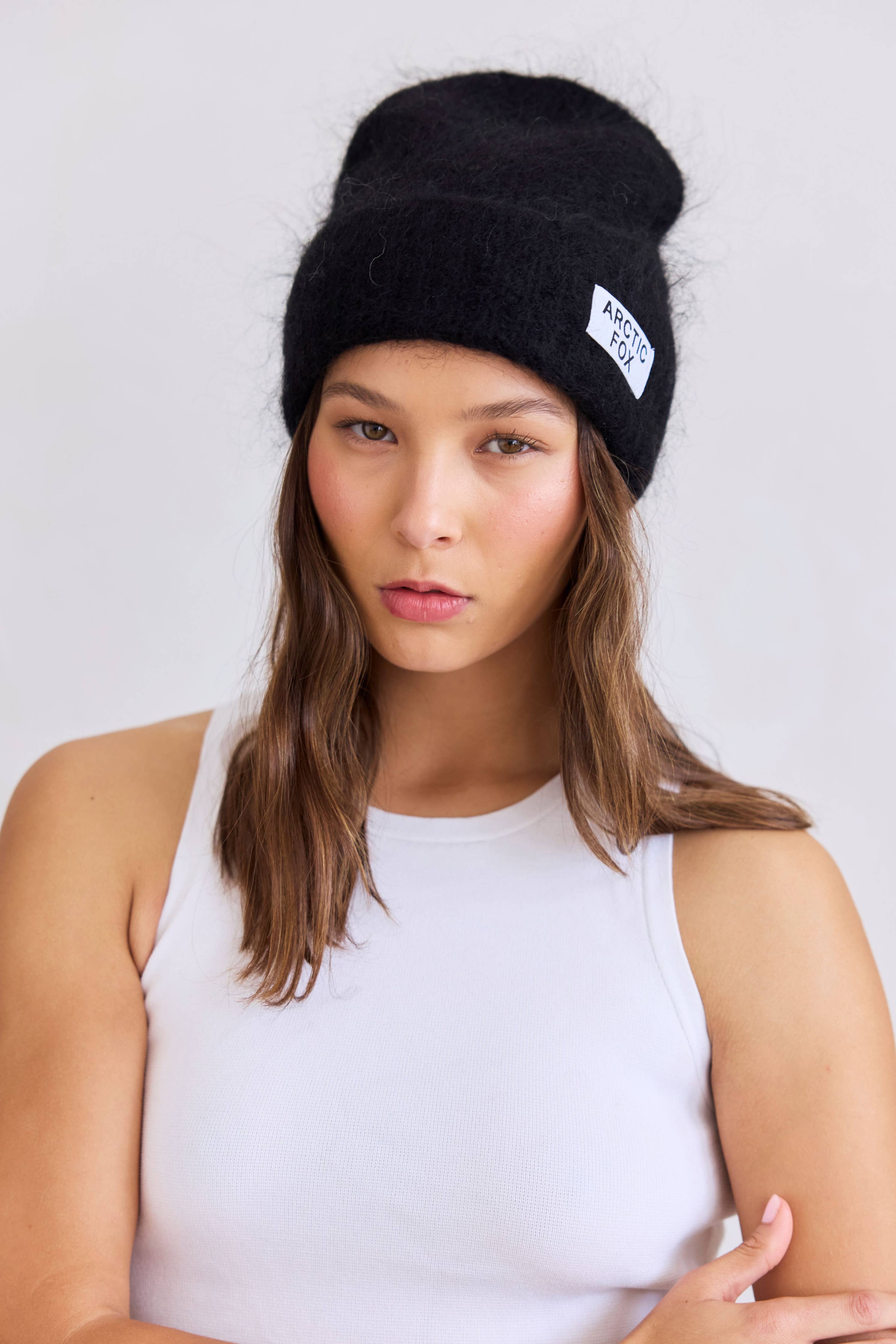 Ebony Black Mohair Beanie