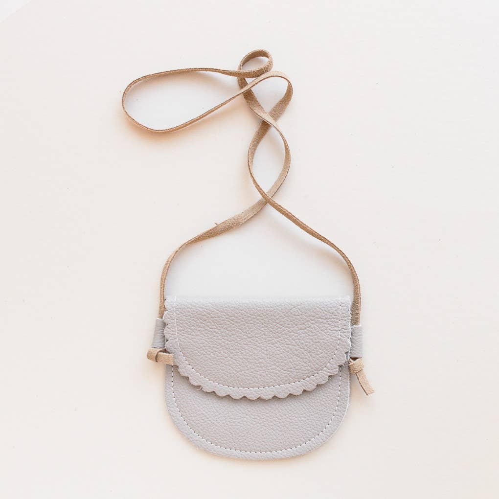 A sweet little bag for little hands! This light gray leather bag has a scalloped edge for the perfect feminine touch. Crafted from genuine leather - Adjustable crossbody strap - Compact and lightweight—perfect for little hands - Ages 4–7