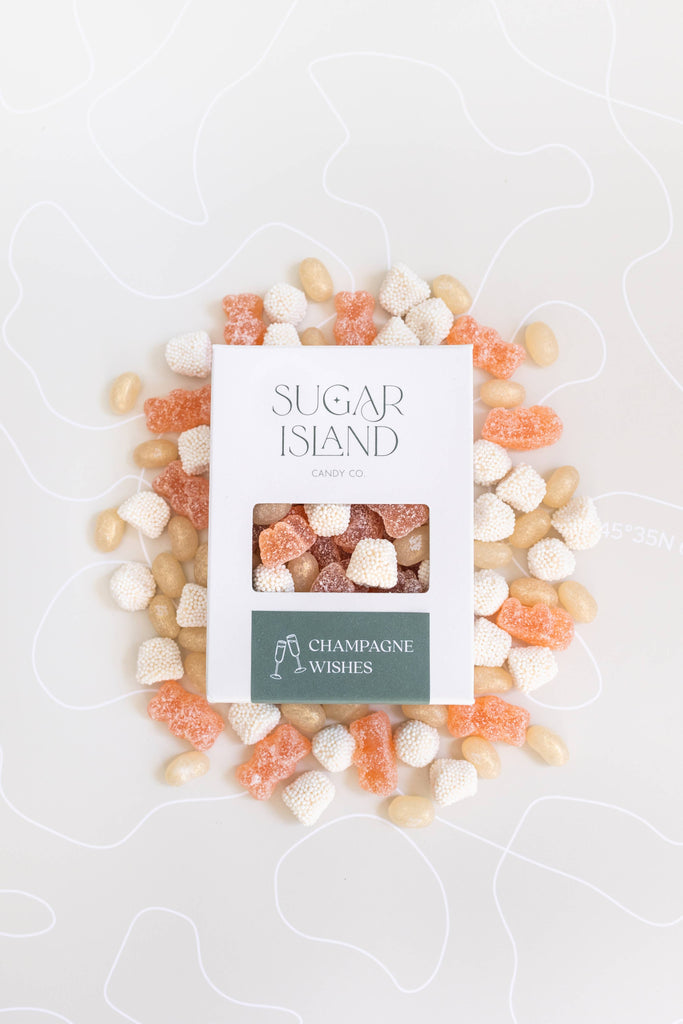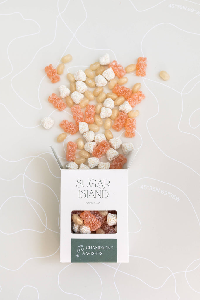 It’s the soft pop of the cork, it’s the clink of the glasses, it’s the first sip filled with excitement and gratitude, it’s the toasts made just because, it’s the simple elegance of the light catching the glass, It’s the taste of summer in a sparkling moment. Includes: PROSECCO GUMMYBEARS, CHAMPAGNE BUBBLES, and POMEGRANATE JELLYBEANS. Crafted in Maine.