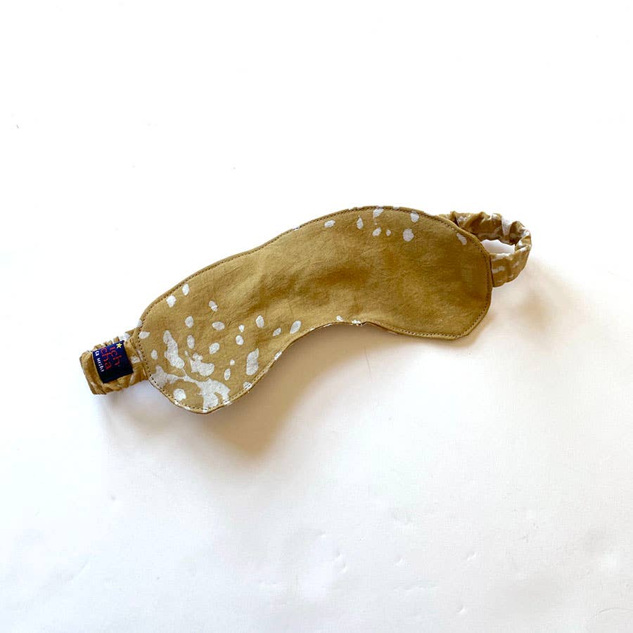 This eye mask is is made from remnant pieces of soft cotton fabrics. It is hand printed and naturally dyed. Because this is made from our cut pieces, no two masks would be the same. The mask feels very light and soft to the skin - almost as if you are wearing nothing. PRODUCT DETAILS: block printed using carved wooden block, hand dyed in natural dyes, 100% light weight cotton.