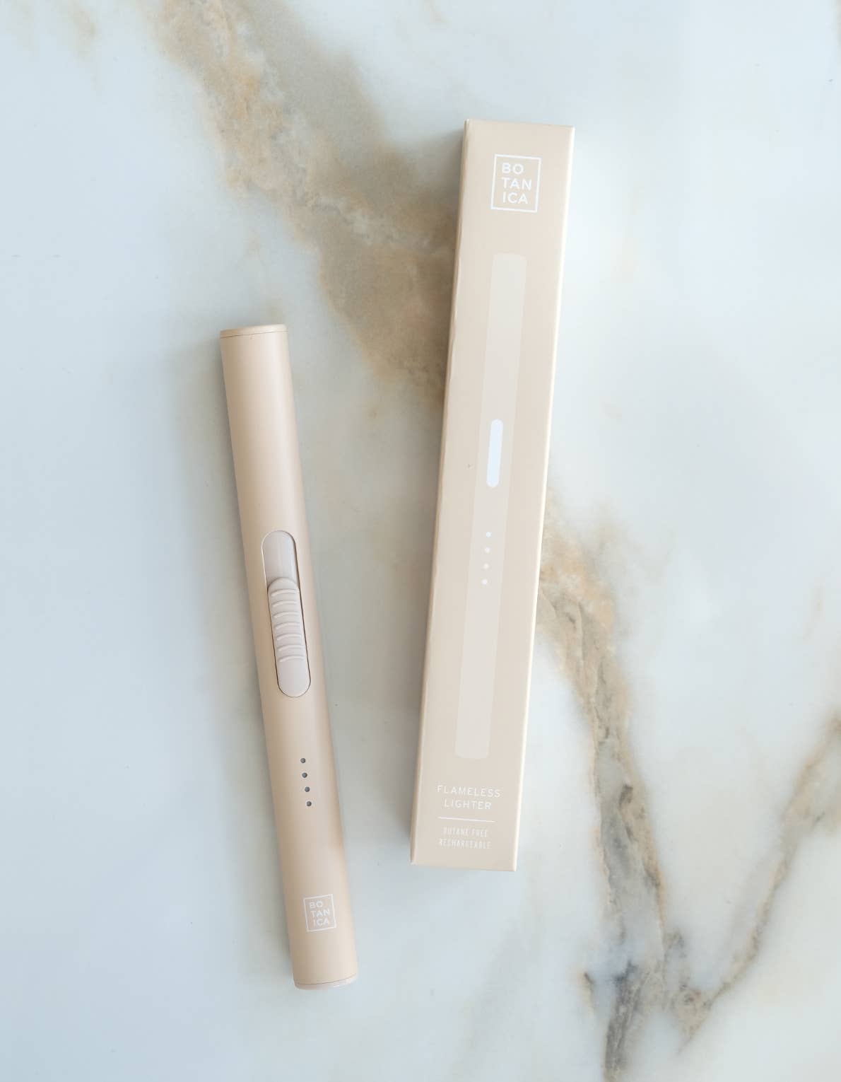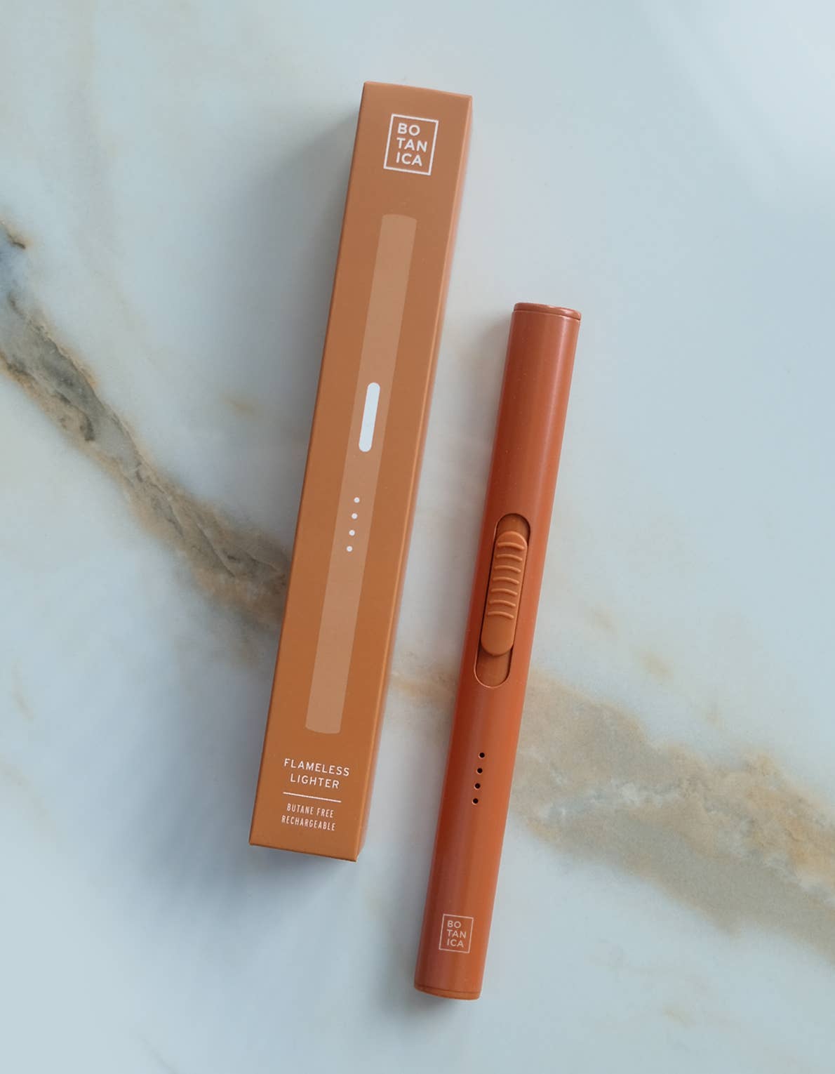 These Flameless Lighters utilize single ARC technology, making for a clean, butane-free ignition for every candle lighting (and more!) Flameless lighters recharge through a convenient USB port. A safety switch is included to make accidental lights a non-issue. Packed in a colorful gift box with a mini 5" USB-C cable, these are a thoughtful & handy addition for candle gifting. • Packaged in Gift Box, includes Charging Cord + Instructions/Safety Sheet.