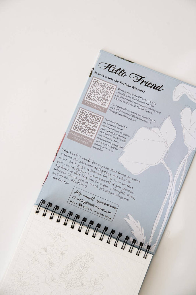 Printed on 140# Watercolor Paper this watercoloring book features 21 Floral Outlines, 4 Practice Pages, and step by step Youtube Tutorials. This book is made for anyone that loves to paint without the pressure of figuring out what to paint. Cause let's be real that's the hardest part.