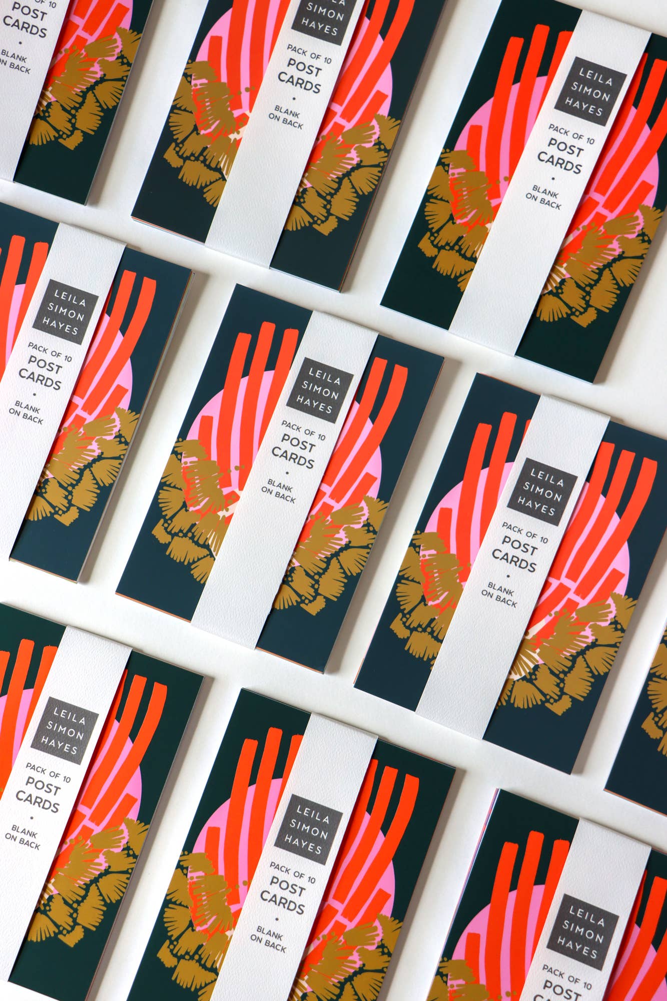 10 postcard pack. 4" x 6", single-sided, blank on back.